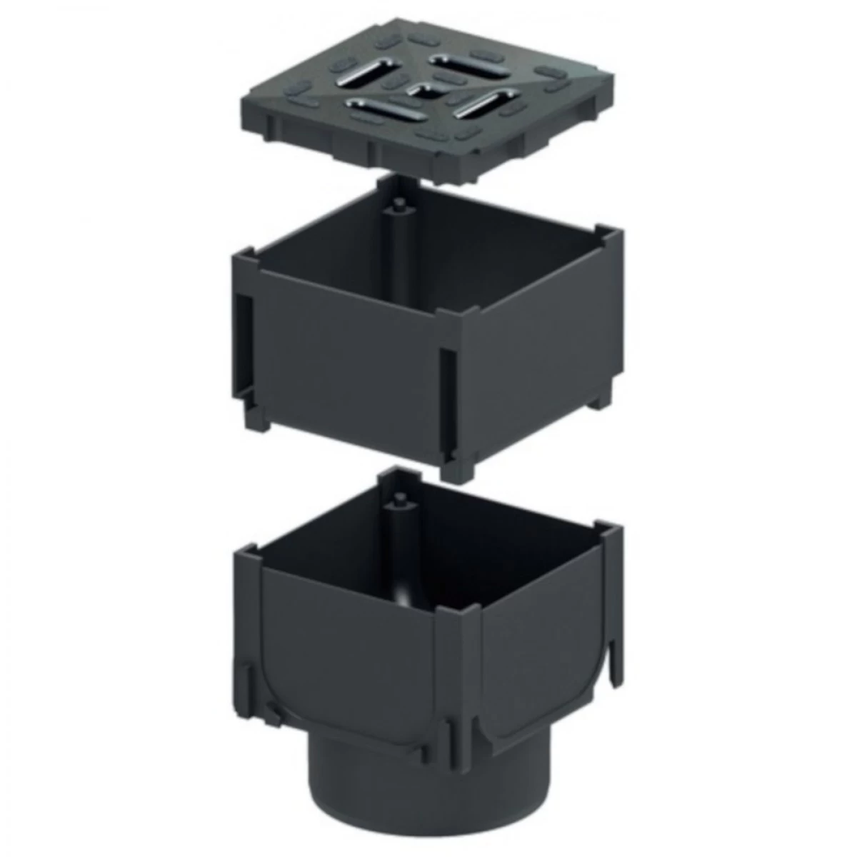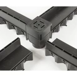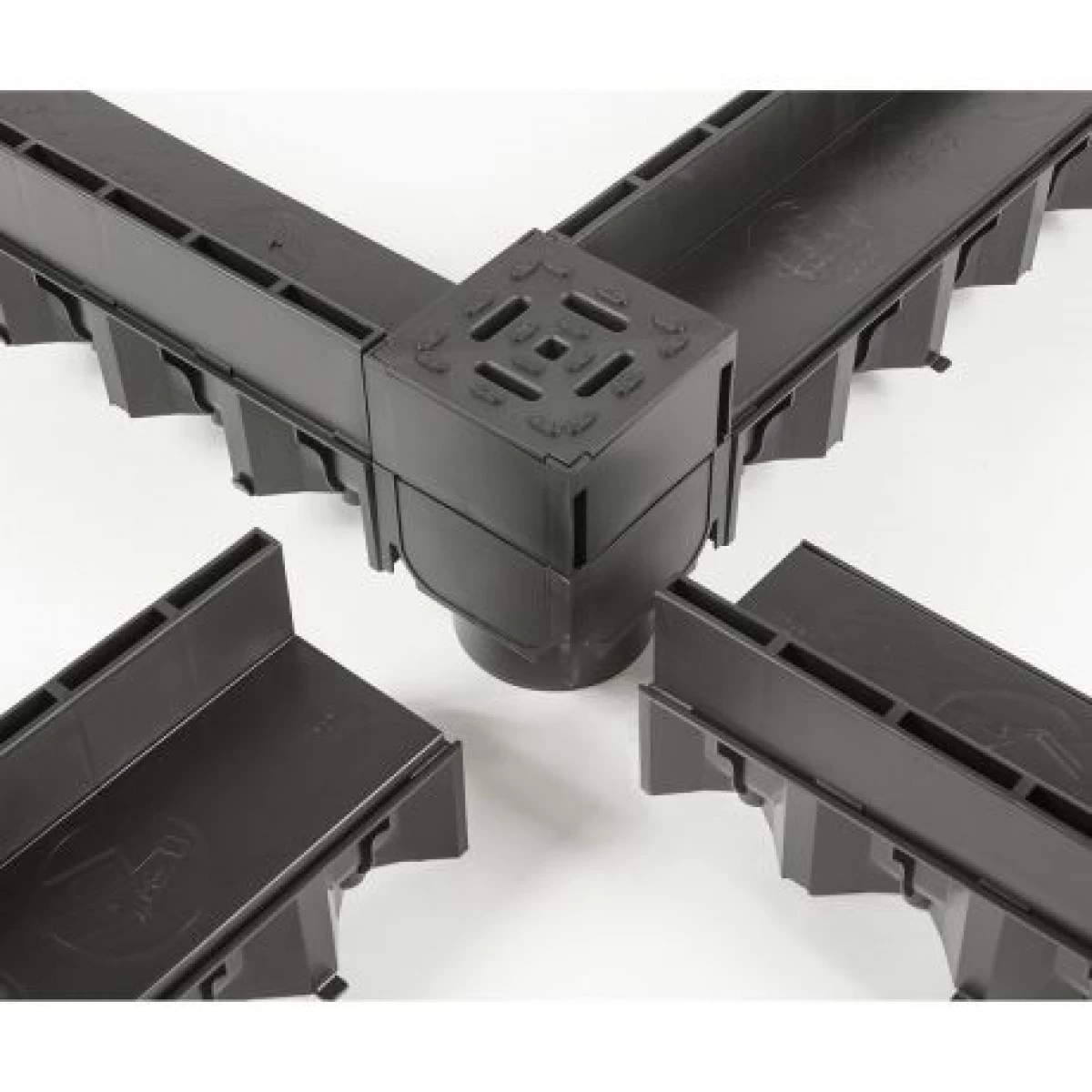 ACO cleanline discreet hoekstuk, dat ook als toegangsluik kan dienen op het einde van de rij. Het hoekstuk wordt via een kliksysteem aangesloten aan de afvoergoot..
