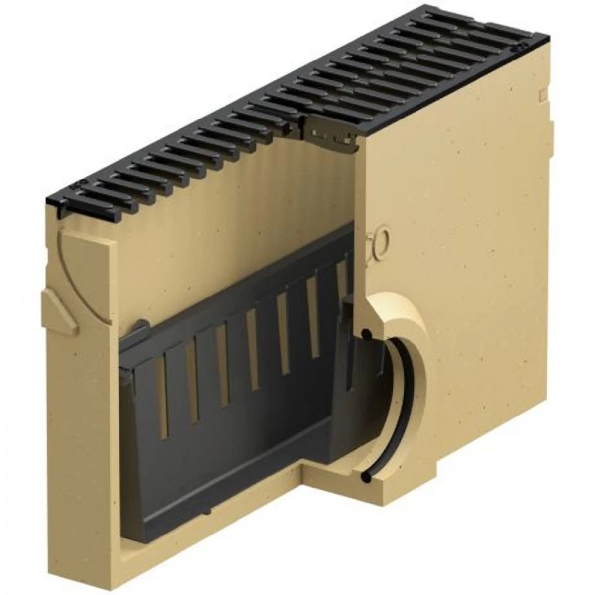 - V-doorsnede: optimale doorstroming en zelfreiniging bodem Gootelement: polyester Schroefloos verankerd rooster 100% vloeistofdichte gootlijn Tand-groefverbinding