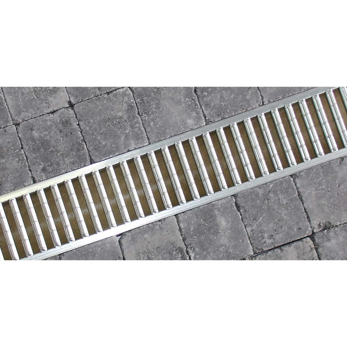 De ACO goot wordt gecombineerd met een sleufrooster in verzinkt staal dat perfect op de goot klemt.
