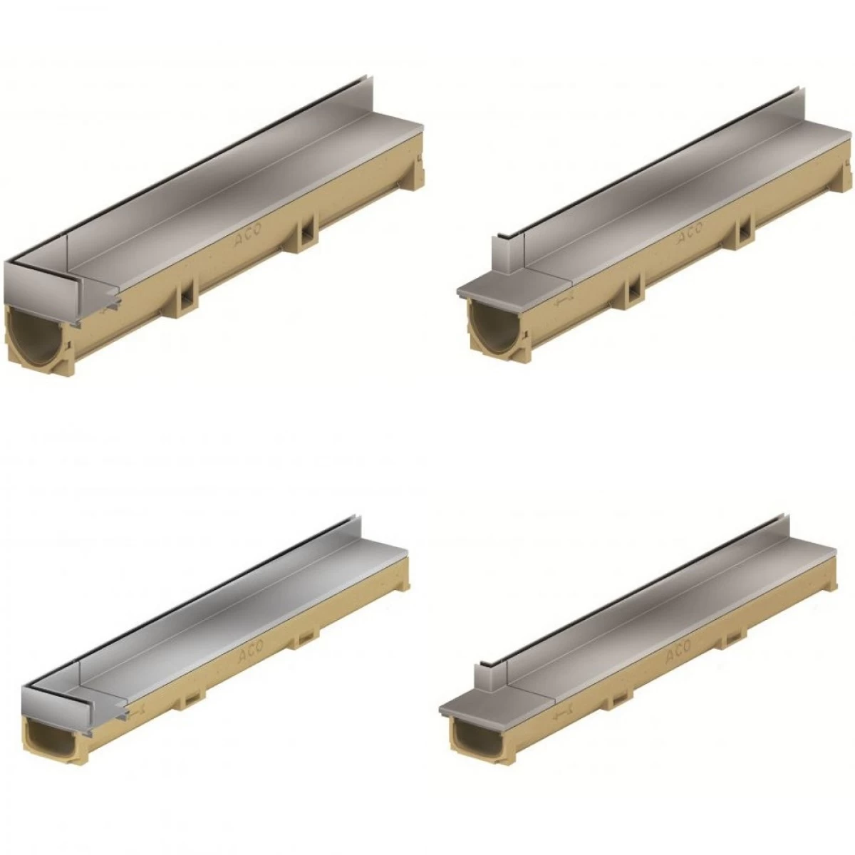 ACO gootelementen Euroline 60 of Euroline 100 met een excentrisch opzetstuk en een lange of korte hoek.