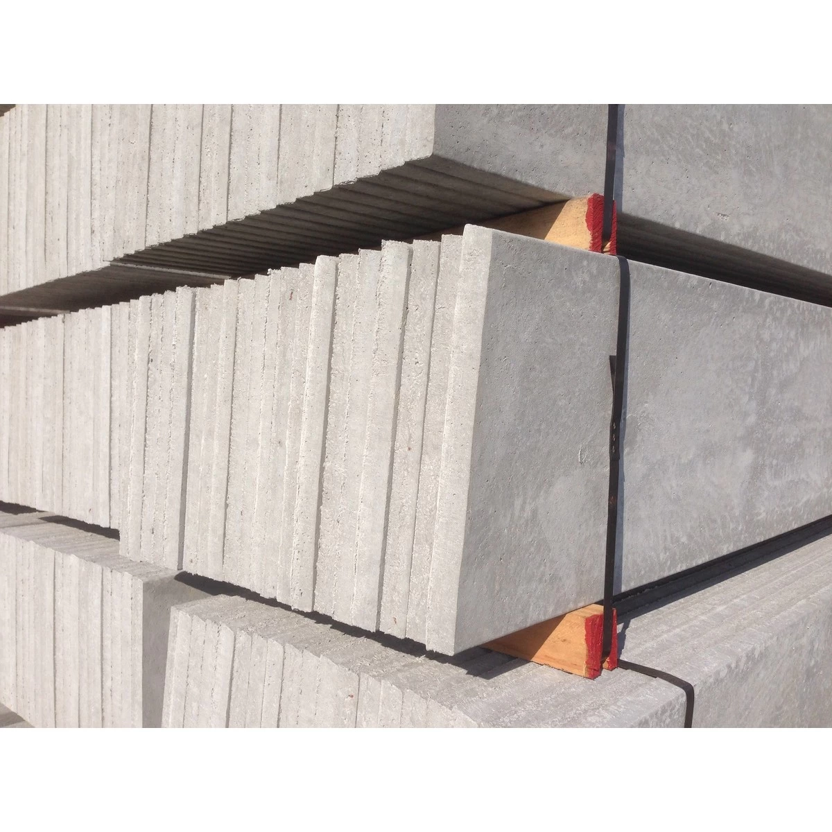 Betonplaat met wapening, de betonplaat heeft een gladde voorzijde en een ruwe achterkant.