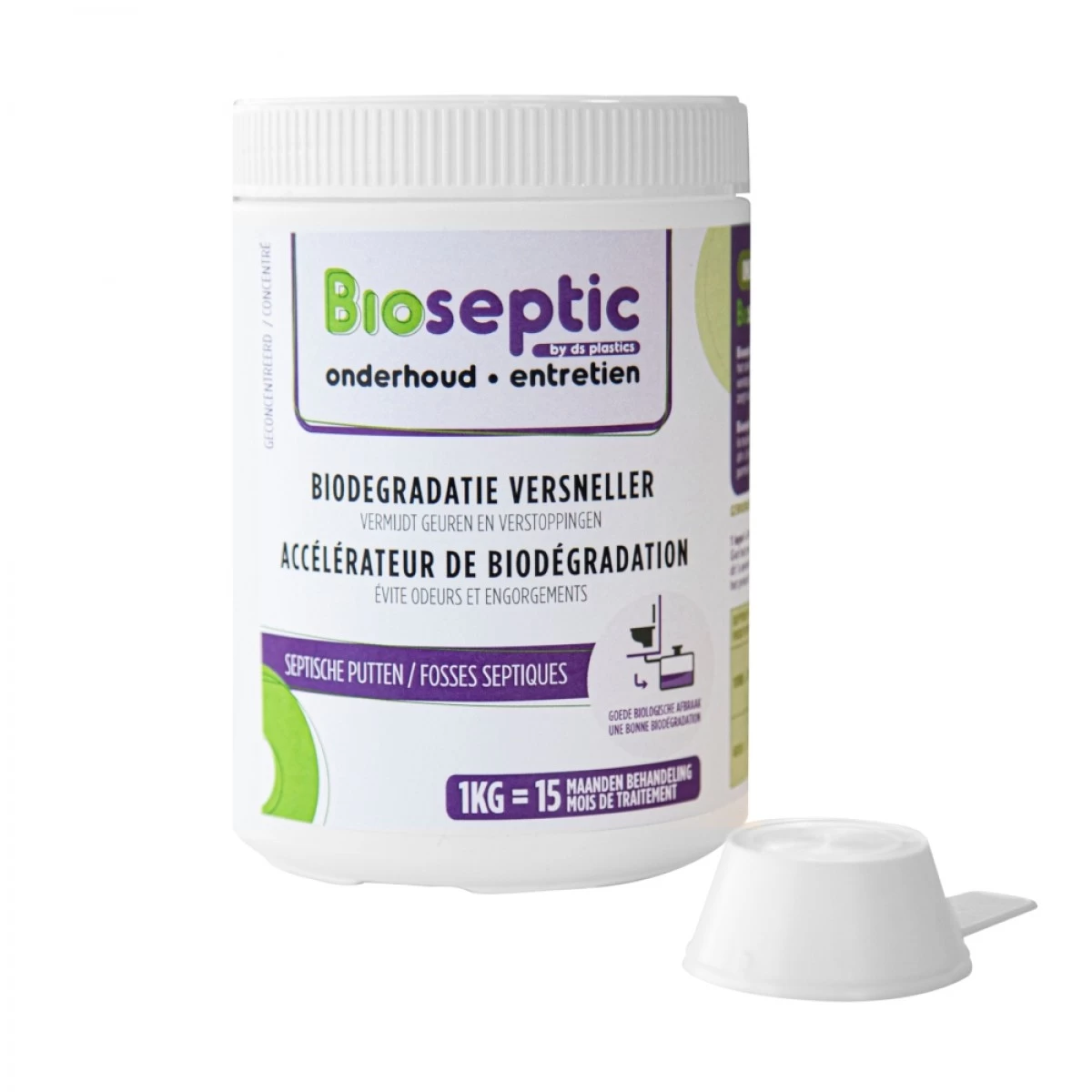 Bioseptic onderhoud van DS plastics is een biodegradatie versneller die geuren en verstoppingen in uw septische tank vermijdt.