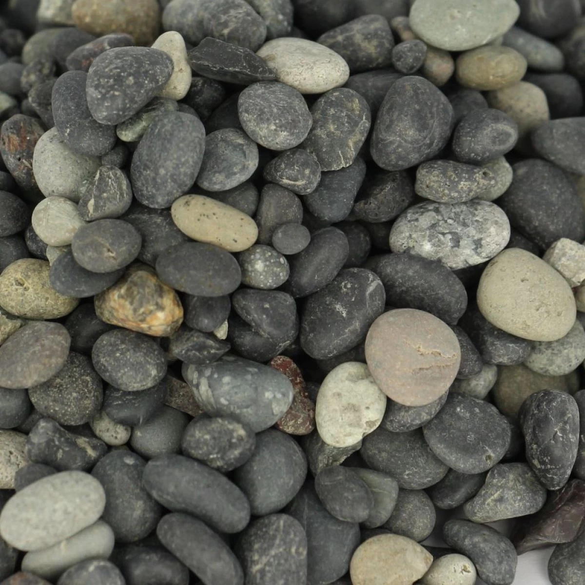 Opmerkingen: geschikt voor wegenbouw, voetpaden, opritten, decoratief beton of tuin en park. Schitterende donker grijs-zwart ronde grind. Ook gekend als BEACH PEBBLE. 8/16 en 16/25 op bestelling (2-3 dagen maximaal), los gestort vanaf 10 ton.
