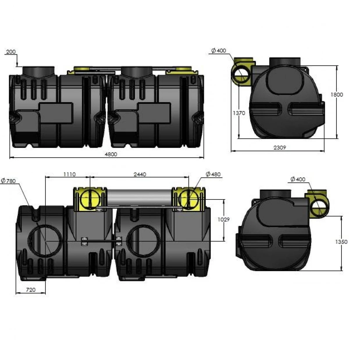 - Afmetingen: 4800 x 2310 x 2000 mm