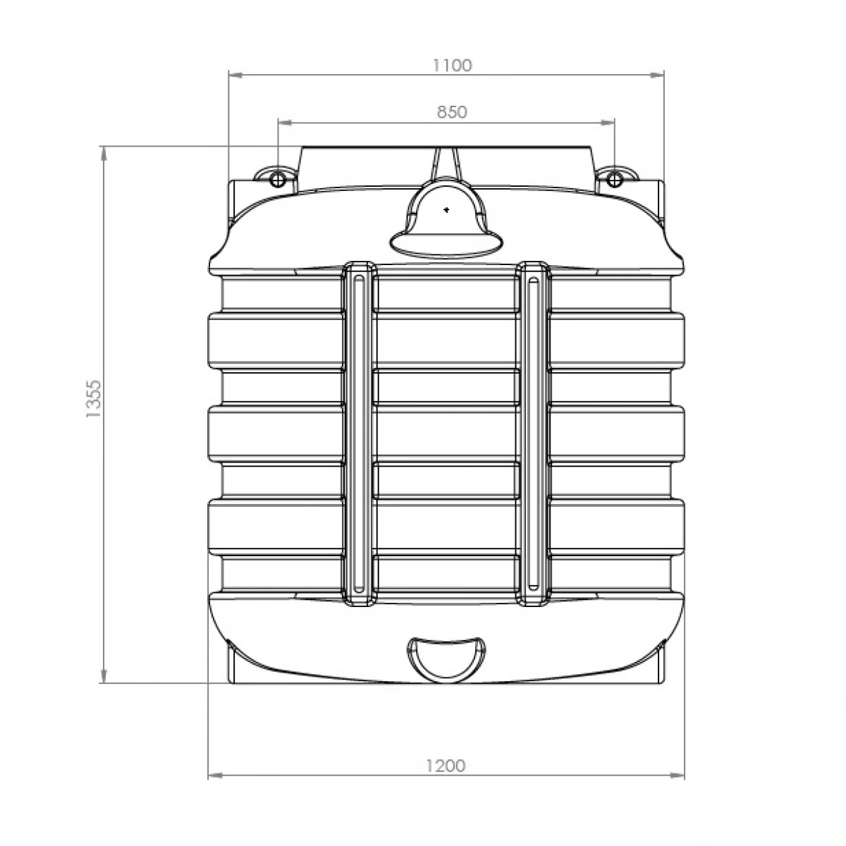 De tank wordt ondergronds en liefst zo dicht mogelijk bij de bron geplaatst. Graaf hiervoor een kuil, voldoende groot zodat de tank mooi kan neergelaten worden. Bedek de bodem van de kuil met 50cm gestabiliseerd zand of indien verkeersbelasting met een gewapende betonplaat. laat de tank neer in de put en sluit de buisleidingen aan. Vul de tank met water en dam simultaan de tank rondom rond aan met gestabiliseerd zand (30cm). Bovenaan dient een betonnen plaat voorzien te worden rond het deksel. Opgelet: deze betonnen plaat dient te rusten op de gestabiliseerd zand rond de tank en niet op de tank zelf.
