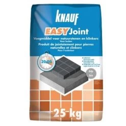 Knauf EasyJoint is een snel uithardend voegmiddel op basis van cement, verrijkt met kunsthars, vulstoffen, hoogwaardige toevoegingen en additieven die de applicatie vereenvoudigen. Het is bijzonder geschikt voor het voegen van terrassen, opritten en tuinpaden, gemaakt van natuursteen, klinkers of kasseien met zowel rechte als onregelmatige randen. Het kan ook worden gebruikt voor wegen die berijdbaar moeten zijn.
