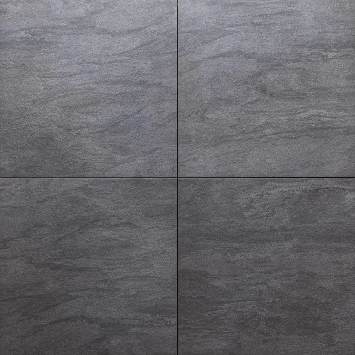 Redsun TRE Trentino Nero is een volkeramische (gekleurde body), gerectificeerde terrastegel met donkere kleurschakeringen.