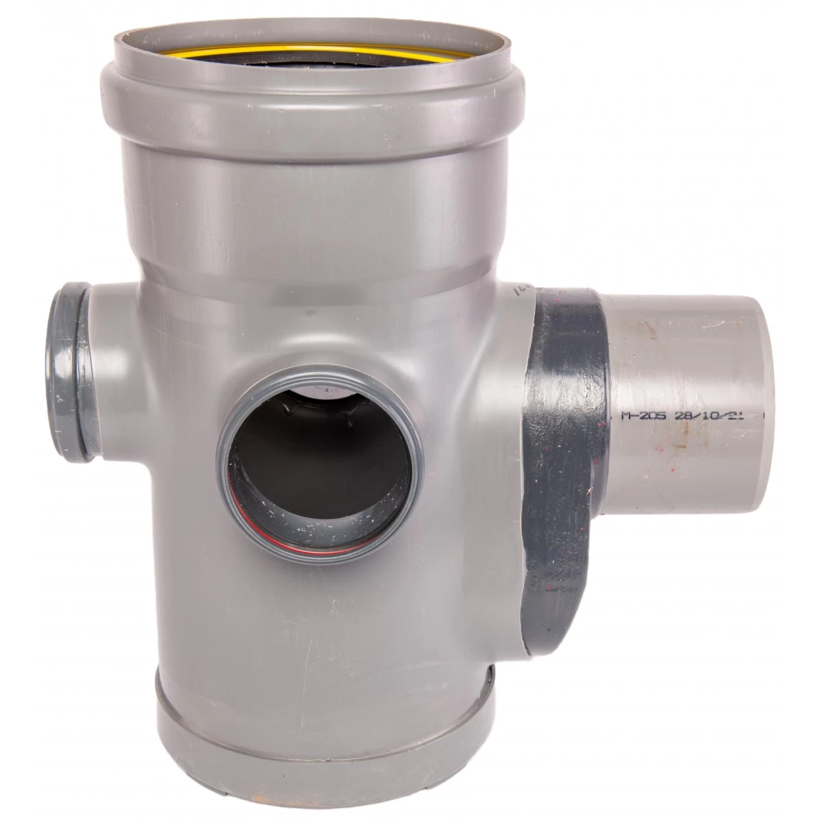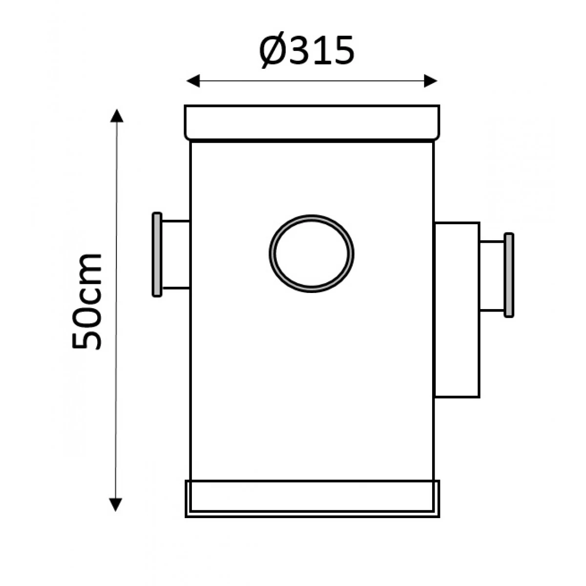 Een PVC sifonput type met diameter 315 mm en 3 x 110 doorvoeren, 1 x 160 sifondoorvoer.