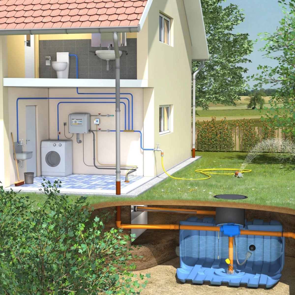 - Voor opvang, opslag en distributie van regenwater voor behoeften die geen drinkwaterkwaliteit vereisen