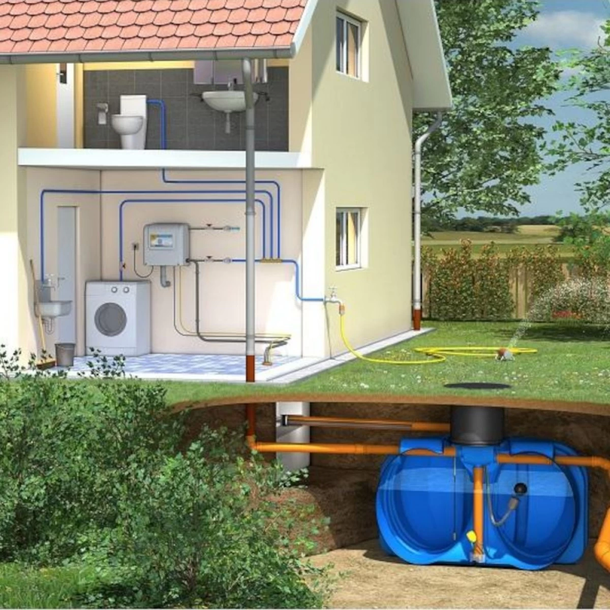 - Voor opvang, opslag en distributie van regenwater voor behoeften die geen drinkwaterkwaliteit vereisen