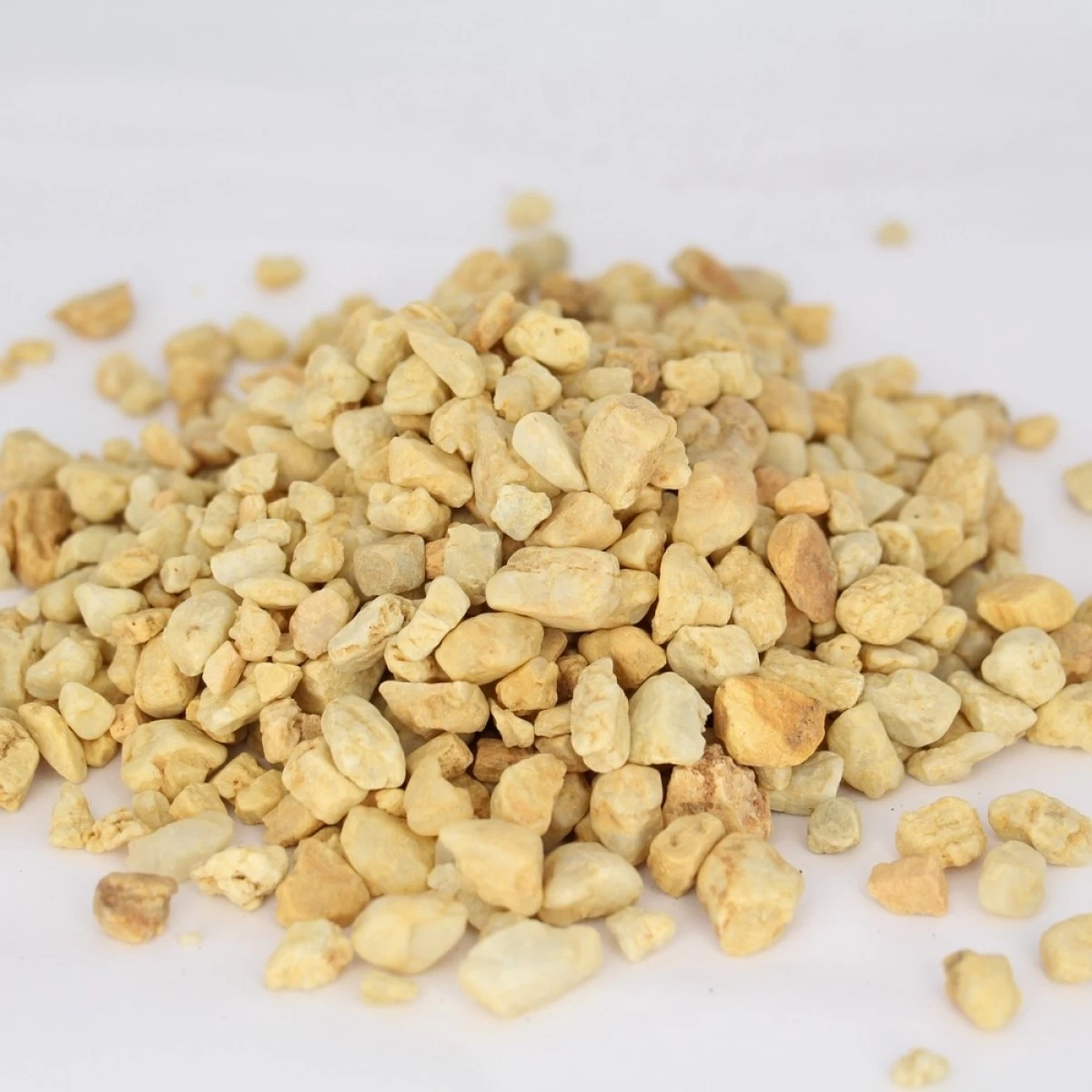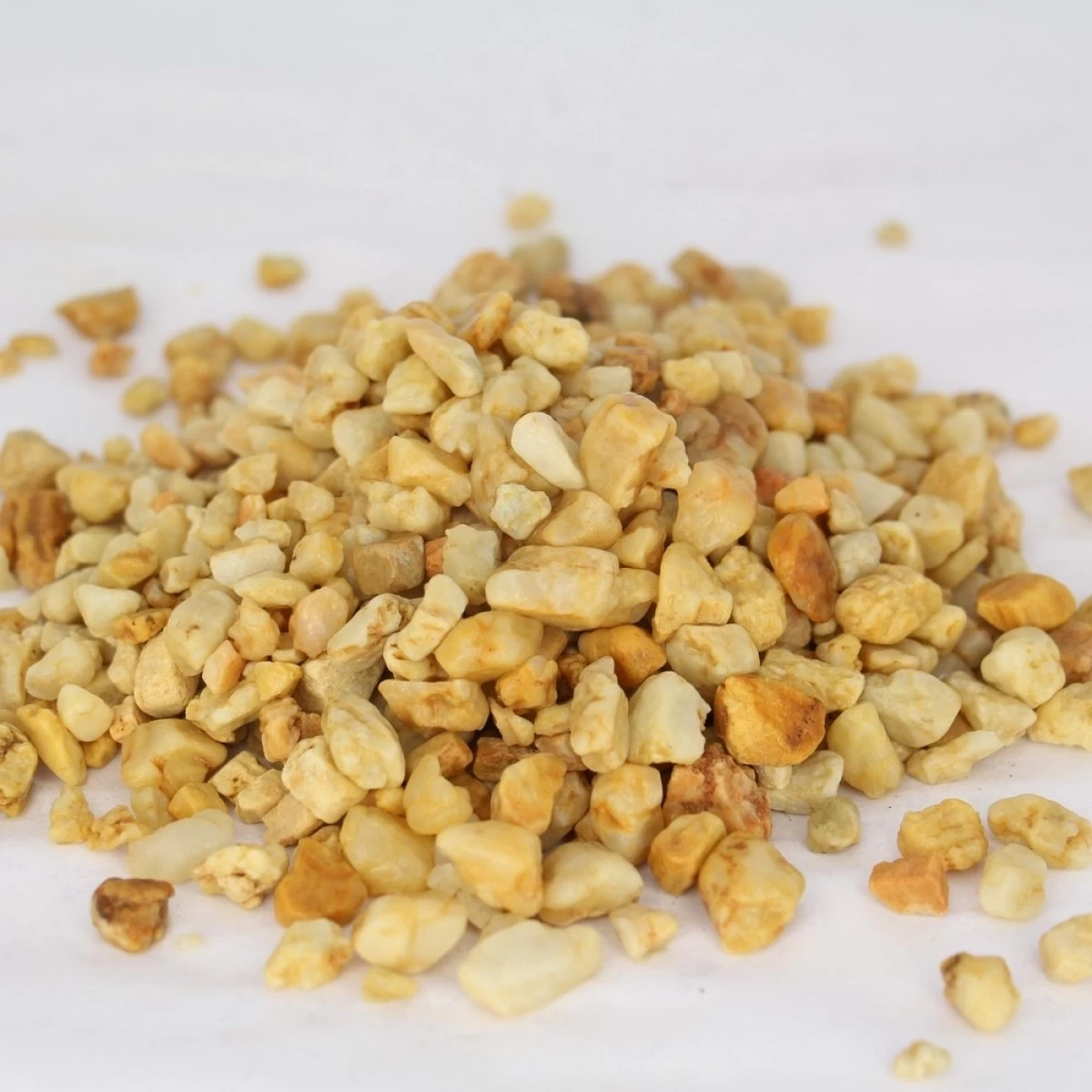 Taunus Kwarts is een geel-witte kwarts gebroken split, uitermate geschikt voor decoratieve doeleinden dankzij zijn natuurlijke rondere vorm