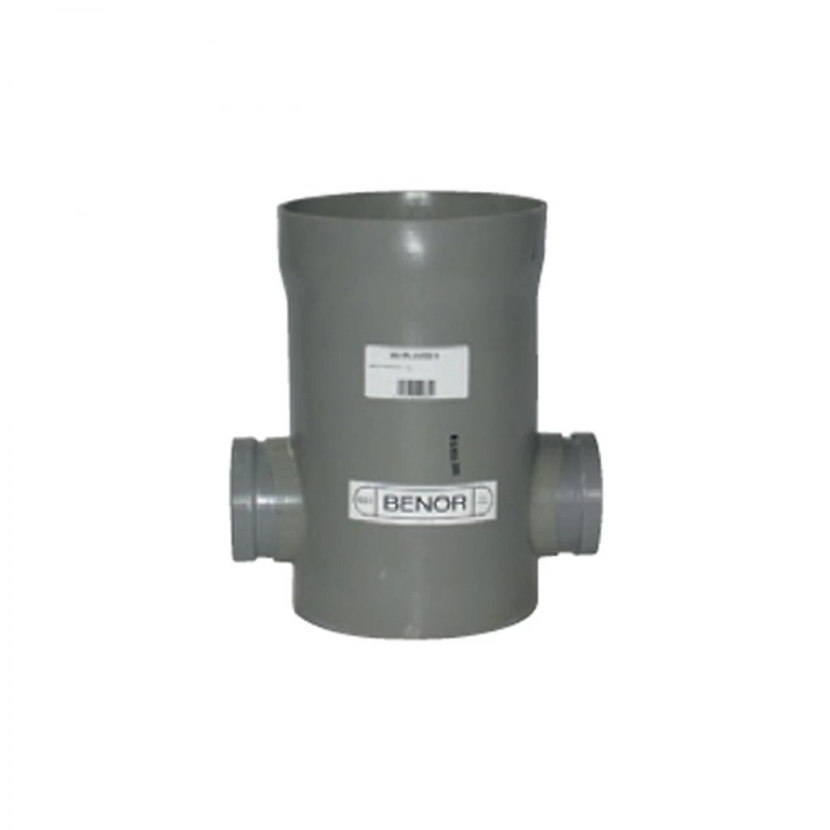 Een PVC toezichtput type 11 met diameter 250mm en 2×110 doorvoeren.