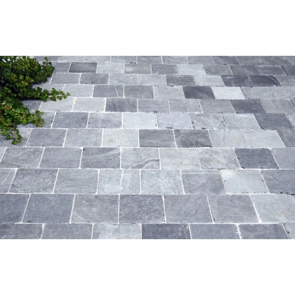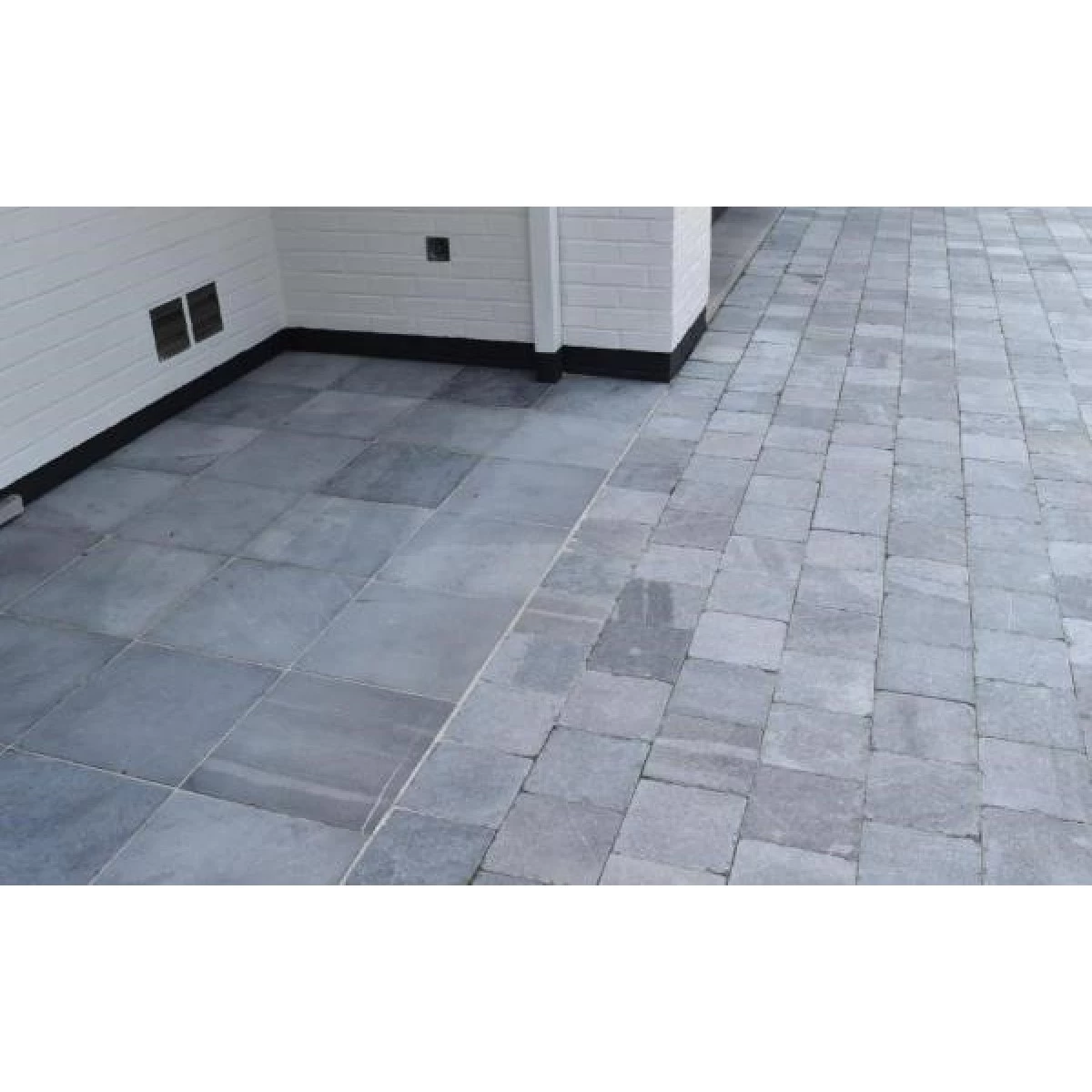 De Vietnamees Blauwsteen getrommeld 15x15x2.5 m² is een onverslijtbare blauwgrijze arduin natuursteen die als vloer en terras gebruikt kan worden. Eventueel ook als korte oprijstrook voor de woning.